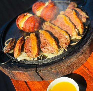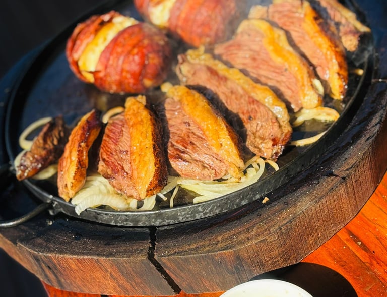 Picanha Argentina acompanhado das batatas parrilleira, arroz e salada real.